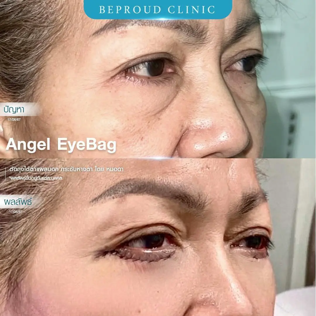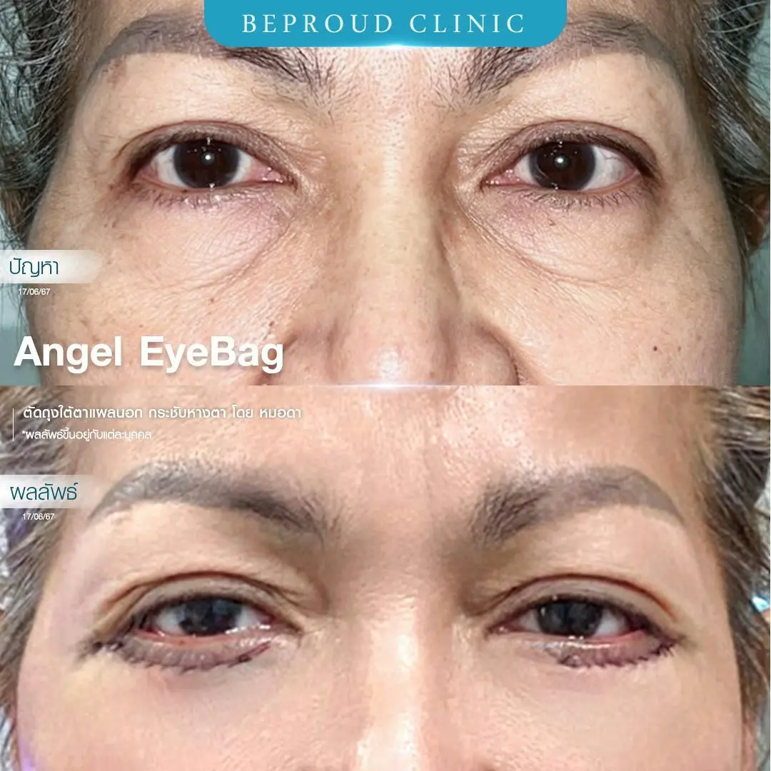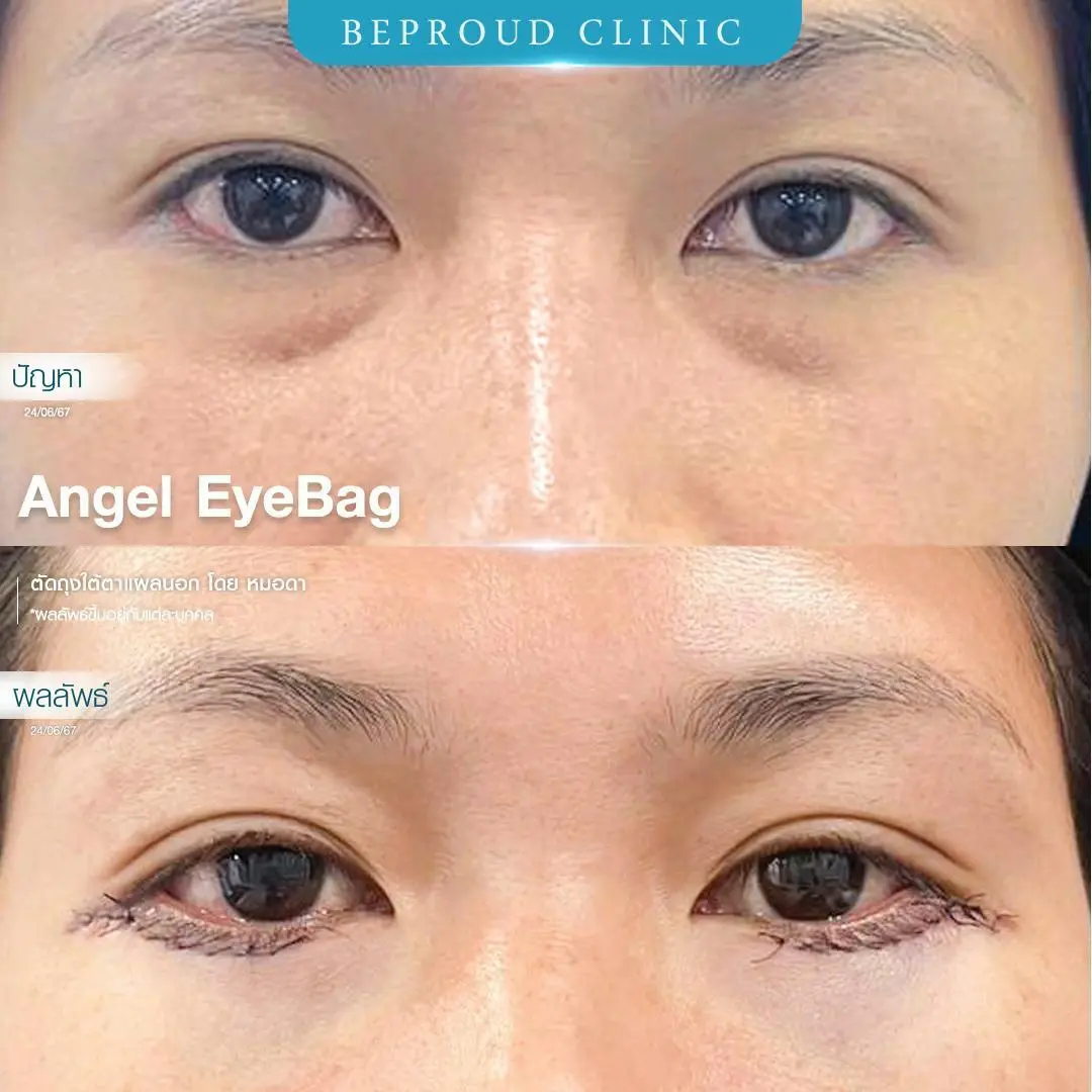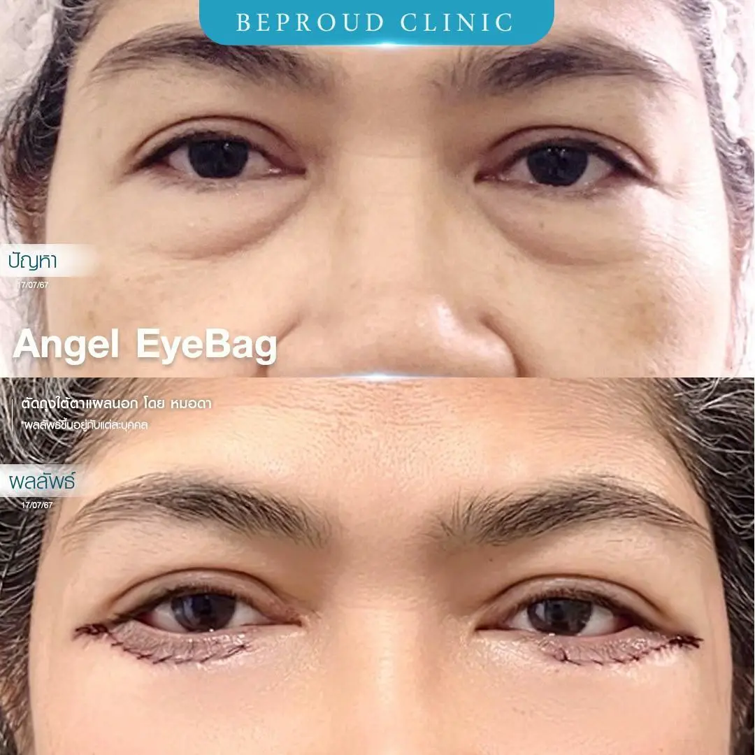 ภาพรีวิวเปรียบเทียบผลลัพธ์ ก่อนทำ-หลังทำศัลยกรรมแก้ตาสองชั้น ของเคสตัวอย่าง เทคนิคกรีดตายาว จัดเรียงไขมัน แก้หัวตา แก้กล้ามเนื้อตาอ่อนแรง ตัดถุงใต้ตาแผลนอก ตัดถุงไขมัน เลาะเอ็นร่องน้ำตา เติมไขมันร่องน้ำตา เย็บกระชับเอ็นกล้ามเนื้อตา โดยอ.หมอหลิง บีพราวด์คลินิก